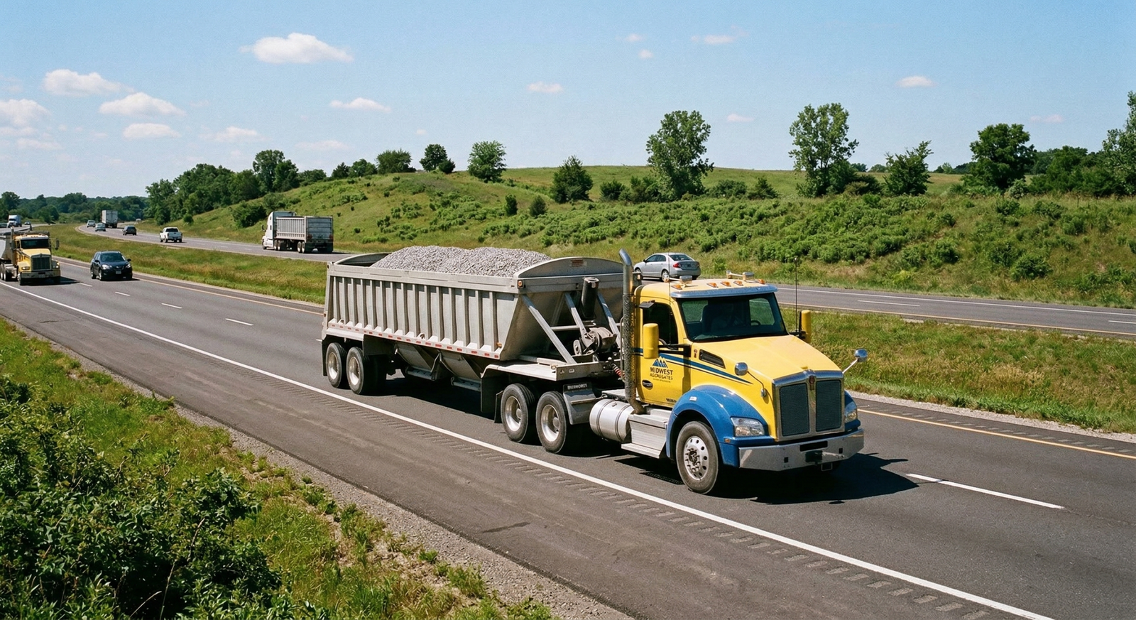 Our primary operation. Belly dump trailers deposit material precisely along the spread, cutting placement time and minimizing re-work on road beds and construction pads.